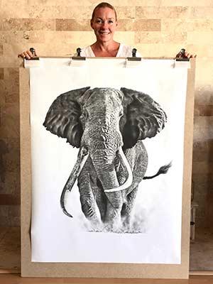 "Cerco di andare oltre il realismo usando sia il carboncino che la matita. Amo questi strumenti per la drammaticità e il contrasto che sono in grado di creare. Per me è importante avere la costante sensazione di affrontare una sfida. Il mio obiettivo è quello di riprodurre il soggetto in modo coinvolgente e ravvicinato, in modo che divenga possibile osservare l'anima di quella persona o di quell’animale. Credo che in questo modo si venga a creare una connessione emotiva molto più forte.