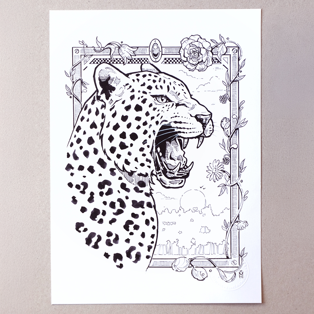 Il suo lavoro trae profonda ispirazione dalla natura: animali, piante, texture organiche e motivi ispirati al mondo vivente alimentano ciascuna delle sue creazioni. Sebbene esplori numerose tecniche, dal disegno tradizionale al digitale, passando per la pittura o il tatuaggio, torna sempre a ciò che la anima fin dall’infanzia: il disegno a inchiostro, in monocromia, un mezzo che le consente di giocare con la luce, i contrasti e la finezza del tratto.